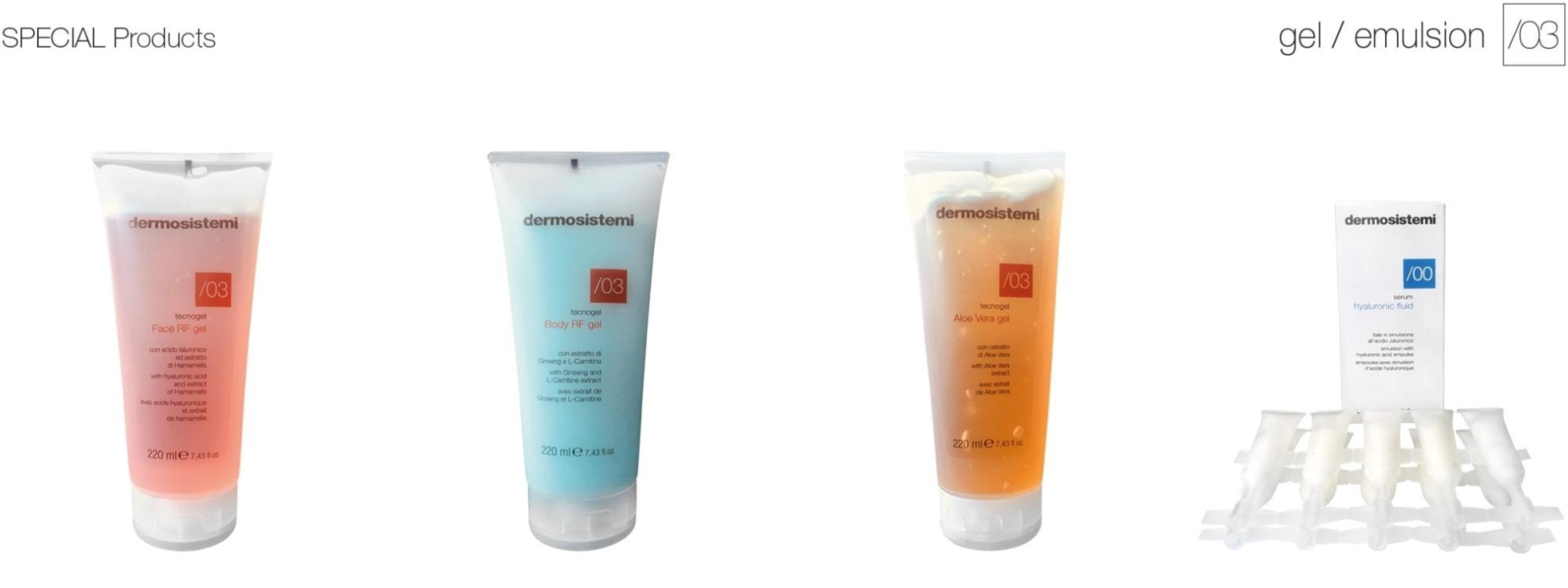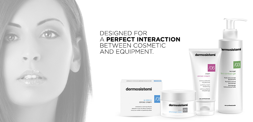 De dermo cosmetische DERMOSISTEMI lijn is het resultaat van zorgvuldig wetenschappelijk onderzoek en wordt geplaatst in een nieuwe categorie producten voor de huid- en lichaamsverzorging, ontworpen voor een perfecte interactie tussen cosmetica en apparatuur.